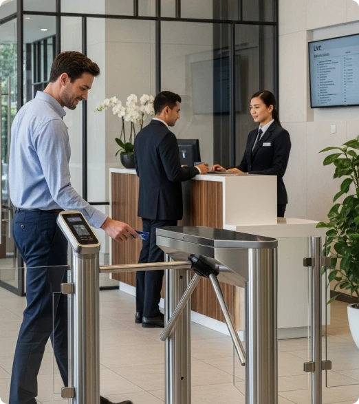 Controle de acesso inteligente para condomínios residenciais e comerciais. Menos riscos, mais tranquilidade e custos reduzidos.
